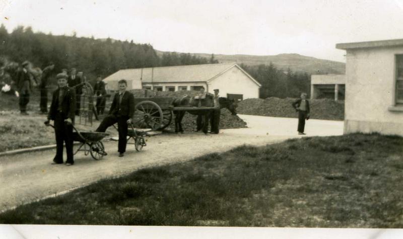 Scoláirí ag obair sa bhfeirm i gColáiste Íosagáin, Baile Mhúirne i 1942.
